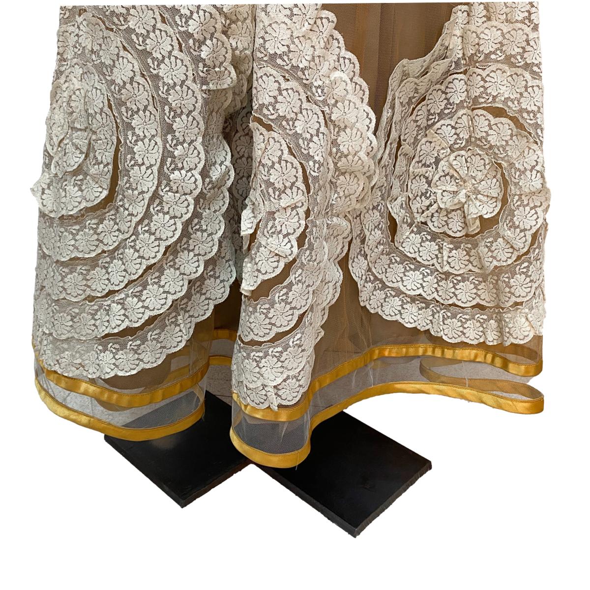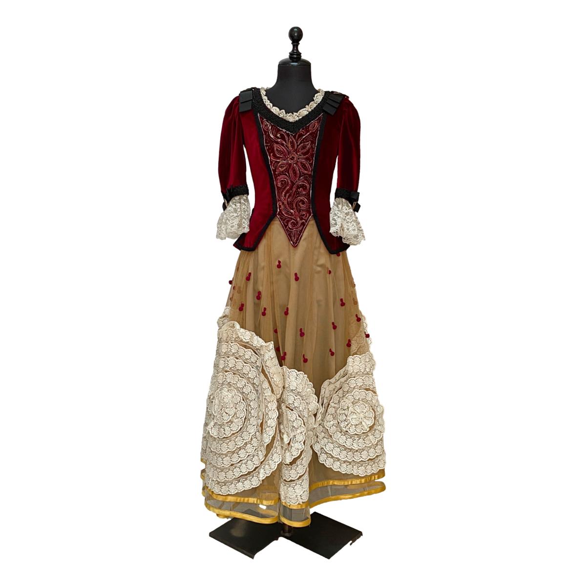 Falda y cuerpo estilo goyesco,tiene la singularidad de que lleva una pieza para aumentar talla.