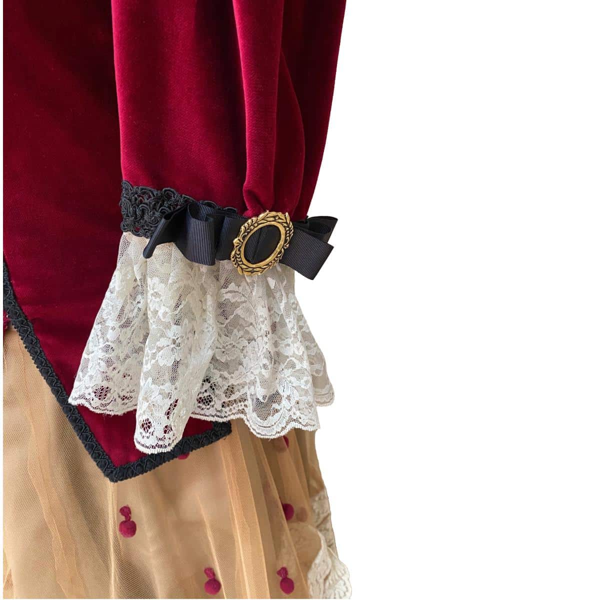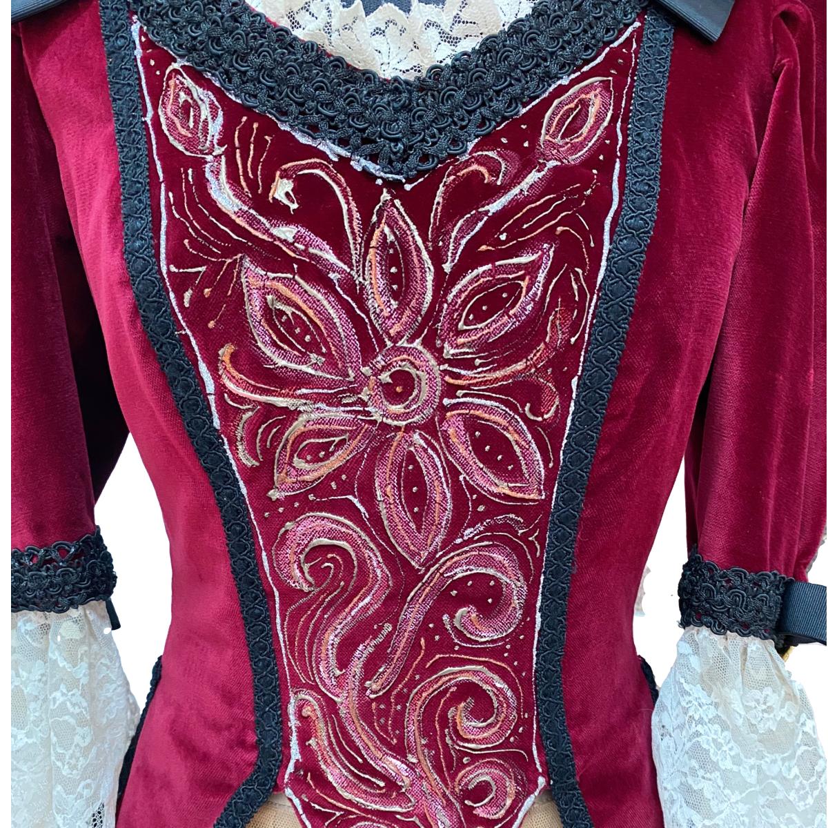 El cuerpo de terciopelo rojo tiene la decoración del pecho pintada a mano.