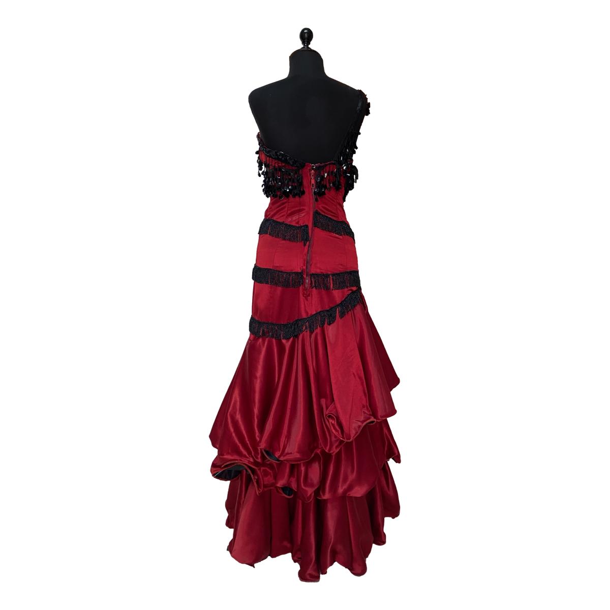 De un color granate vibrante, este vestido es ideal para una pieza de clásico español.
