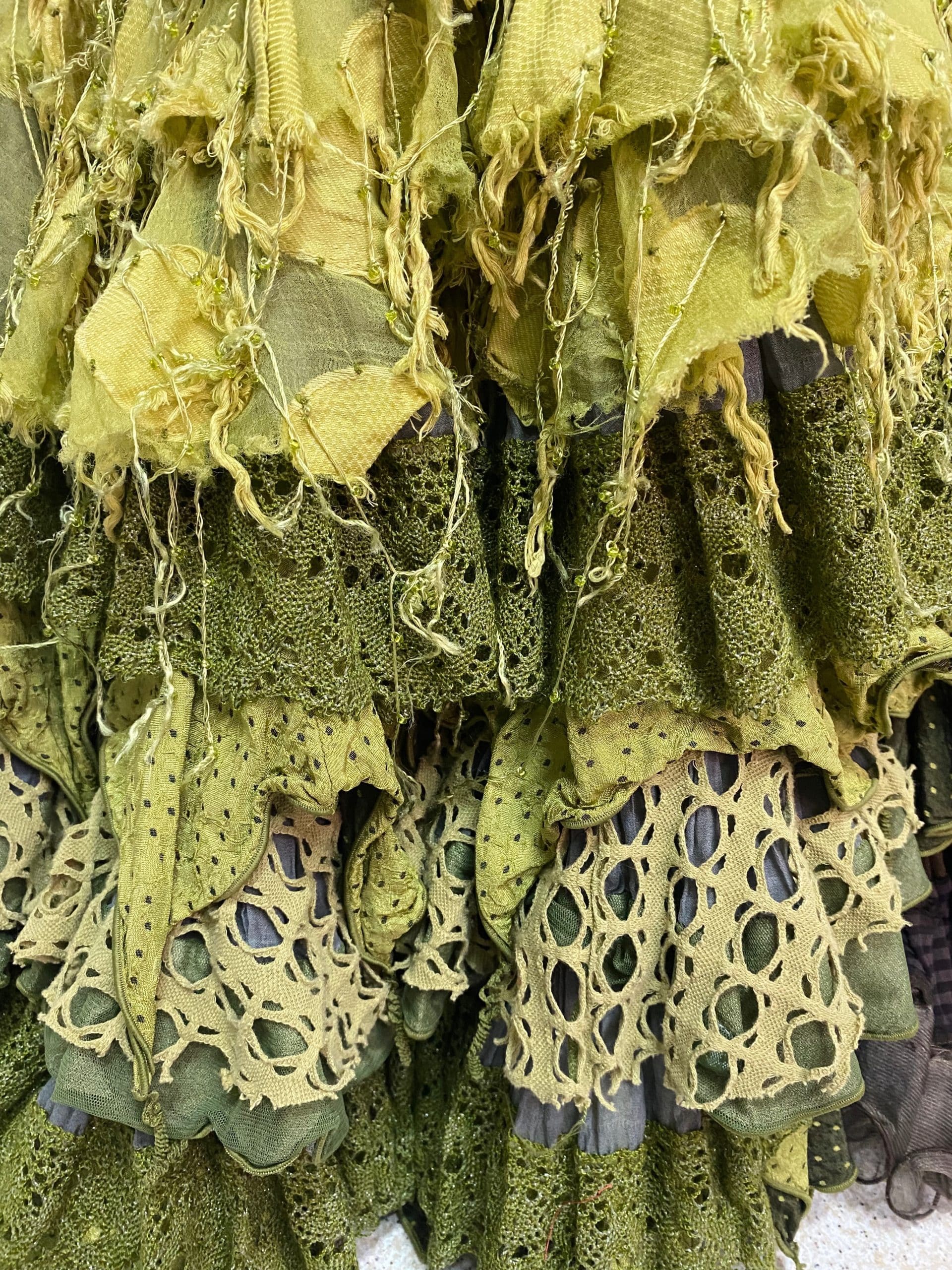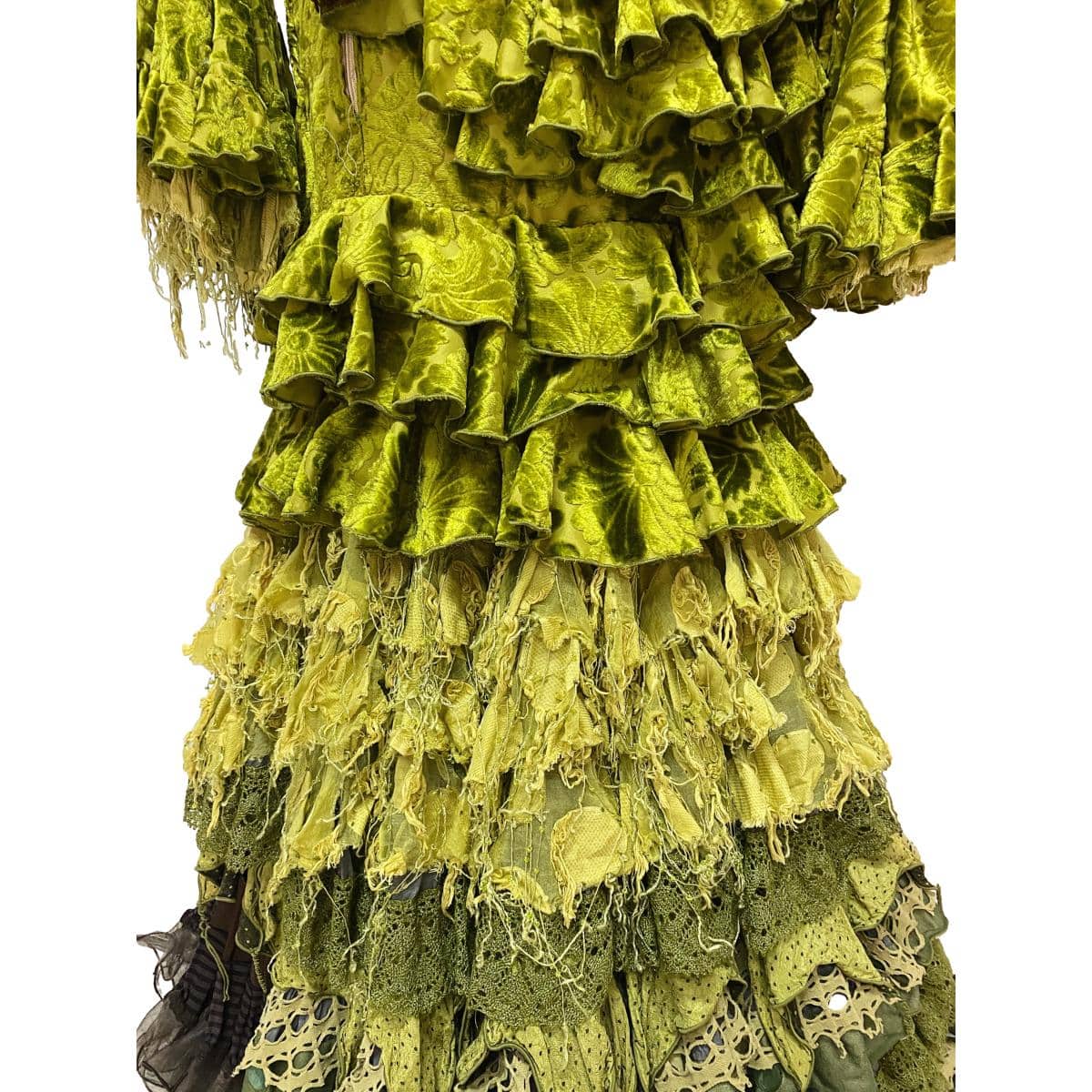 La conbinación de texturas y detalles únicos de este vestido refleja la personalidad de la diseñadora.